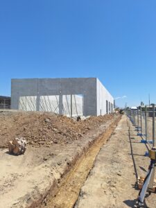 The work has begun, with new ground preparations and the main office building taking shape.